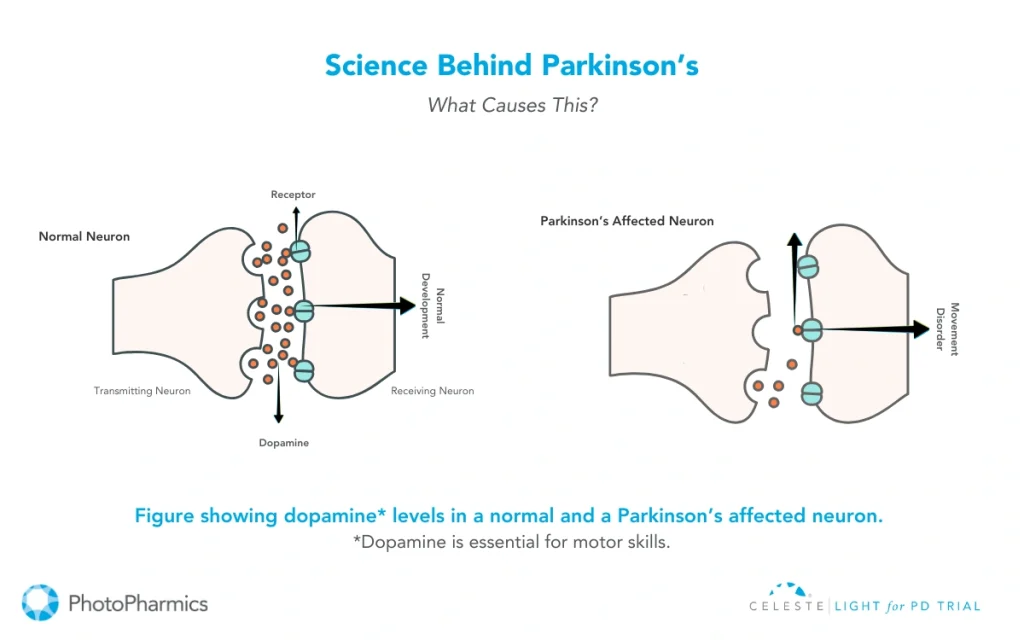 PhotoPharmics is pioneering a non-invasive approach to address these challenges. Our Light for PD clinical trial is seeking participants to evaluate the effectiveness of the Celeste therapeutic light device.