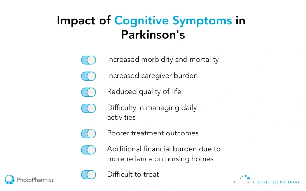 - Cognitive Impairment: Issues like memory loss, slower thinking (bradyphrenia), and difficulty multitasking occur as Parkinson’s affects brain regions controlling cognition. Over time, this can progress to mild cognitive impairment or dementia.